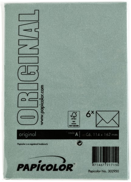 Envelop Papicolor C6 114x162mm zeegroen pak à 6 stuks