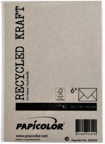 Envelop Papicolor EA5 156x220mm recycled fluting kraft grijs pak à 6 stuks