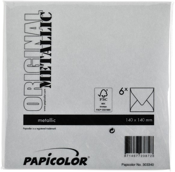 Stel een vraag over Envelop Papicolor 140x140mm metallic zilver pak à 6 stuks
