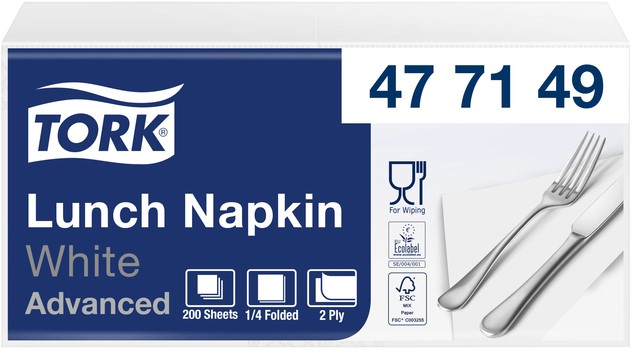 Stel een vraag over Lunchservet Tork Advanced 1/4 vouw 2-laags 328x325mm 200 vel wit 477149