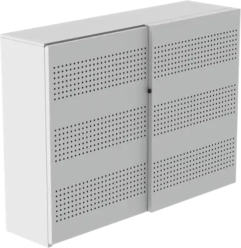 Akoestische schuifdeurkasten hebben een dubbele functie voor kantoor. Naast veel opbergruimte bieden deze kasten ook meer rust door de akoestische werking van de deuren. De deuren zijn geperforeerd met ronde gaten en in diverse ral kleuren te verkrijgen. Het akoestische materiaal dat is toegepast is ook verkrijgbaar in diverse kleuren. De akoestische schuifdeuren lopen soepel over de rails. Mede door de akoestische werking worden de kasten ook vaak toegepast als afscheiding / roomdivider in kantoorruimtes.