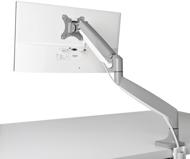 • Monitorarmen maken het mogelijk om computerschermen ergonomischer te positioneren, wat kan helpen de nek- en oogklachten te verminderen die kunnen optreden na langdurig computergebruik. Verbeter uw houding, bevorder een goede oogpositie en ondersteun nek- en schoudercomfort met de SmartFit™ One-Touch in hoogte verstelbare monitorarm. Het ergonomische ontwerp zorgt voor meer welzijn en hogere productiviteit. Het maakt het eenvoudiger de juiste ergonomische positie te vinden en stelt gebruikers in staat de hoogte, diepte en hoek van hun monitor aan te passen voor comfort op maat. Houd de monitor stabiel in elke positie, of u deze nu horizontaal of verticaal gebruikt.