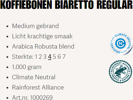Stel een vraag over Koffie Biaretto bonen regular 1000 gram