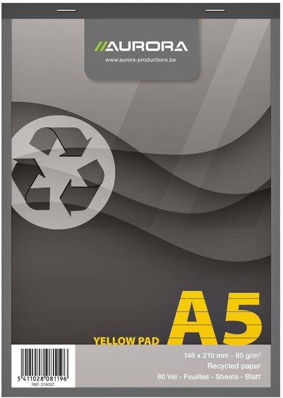 Stel een vraag over Schrijfblok Aurora A5 lijn 80 vel 80gr geel