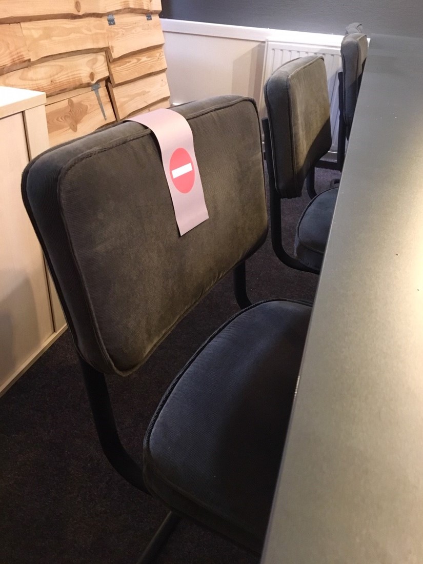 Met deze handige hangers maakt u duidelijk welke meubelen of werkplekken (tijdelijk) niet gebruikt kunnen worden zodat afstand bewaard kan worden.