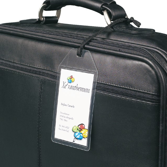 Artikelomschrijving Label bagage Djois 3L 11120 72x123mm met nylonkoord transparant 10 stuks