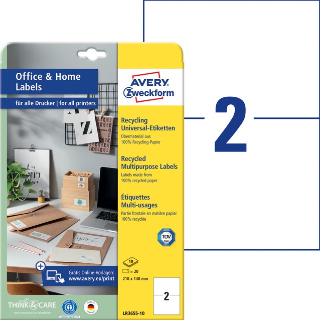 Etiket Avery Zweckform LR3655-10 210x148mm recycled wit 20stuks