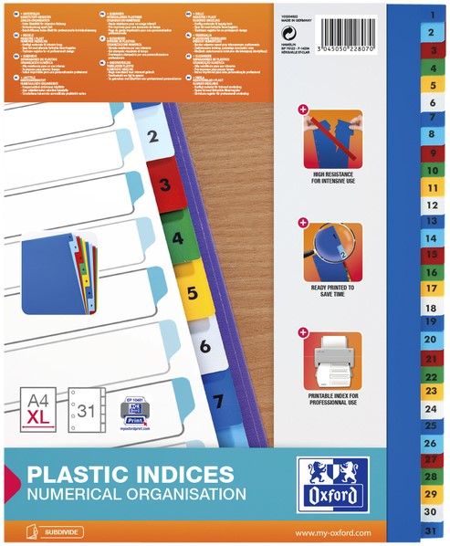 Stel een vraag over Tabbladen Oxford A4+ 11-gaats 1-31 PP kleur