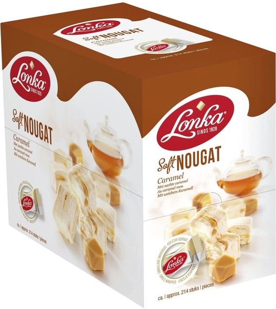 Stel een vraag over Nougat Lonka caramel doos 214 stuks