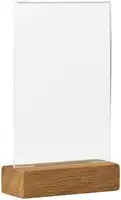 Deze mooie van kaarthouder van Europel is zeer geschikt voor een representatieve presentatie van folders en prijskaarten. De voet is gemaakt van stevig en duurzaam FSC gecertificeerde eikenhout. De houder is van hoogwaardig glashelder acrylaat. Hierdoor kun je tweezijdig je product presenteren. Geschikt voor papierformaat A6.