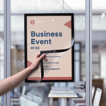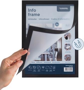 Zelfklevende kader Document eenvoudig verwisselbaar dankzij de magnetische randen Herpositioneerbare zelfklevende transparante folie Zowel staand als liggend te gebruiken Geschikt voor gladde ondergronden Tweezijdige presentatie op glas Kaderkleur aan tweezijden zichtbaar Breedte kader: 1,8 cm Pak van 2 stuks