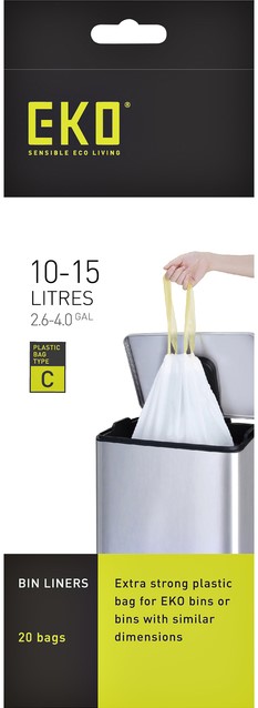 Stel een vraag over Afvalzak EKO MDPE type C met trekband 45x50cm 10-15L wit rol à 20 stuks