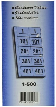 Deze garderobeblokken zijn perfect voor het organiseren van je vestiaire. Met nummers van 1 tot 500 kun je eenvoudig en snel de jassen of tassen van je gasten labelen. De blokken zijn geperforeerd en hebben 5 dubbele nummers per blad, wat het gebruik nog gemakkelijker maakt. Ideaal voor evenementen, feesten of in een sportclub. Met een formaat van 12 x 20 cm zijn ze compact en makkelijk op te bergen.