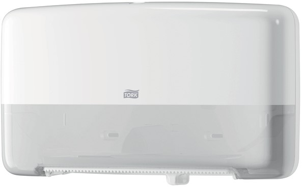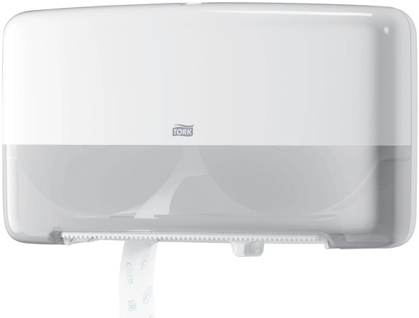 Stel een vraag over Toiletpapierdispenser Tork T2 Elevation jumbo klein duo wit 555500