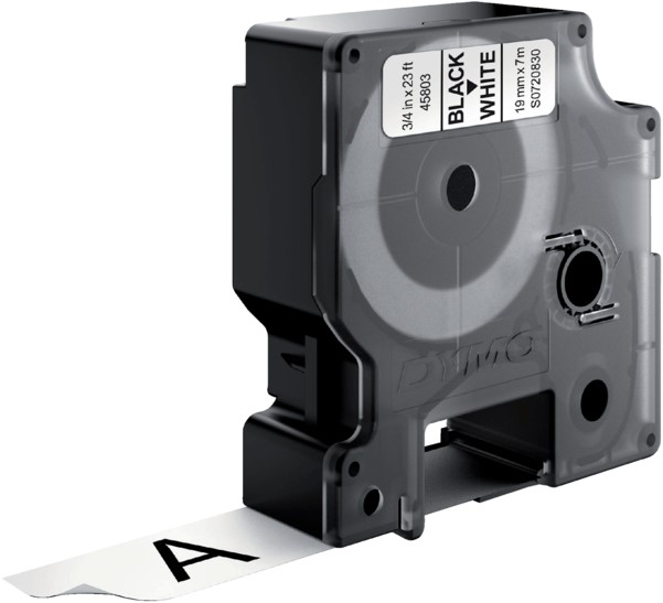 Stel een vraag over LABELTAPE DYMO COMPATIBLE 45803 19MMX7M D1 WIT/ZWART 1 Stuk