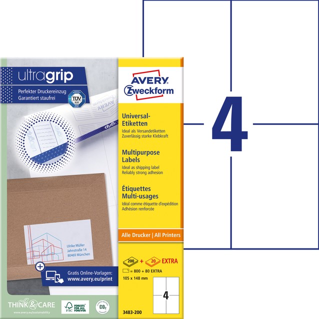 Etiket Avery Zweckform 3483 105x148mm A6 wit 400stuks
