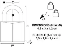 • De beugel met een diameter van 5 mm is 16 mm lang en gemaakt van gehard staal, wat extra weerstand biedt tegen snijden en zagen.
