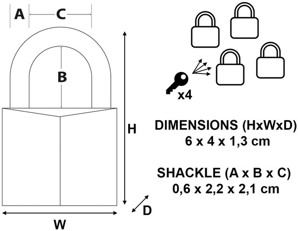• 4 sloten te bedienen met één dezelfde sleutel.