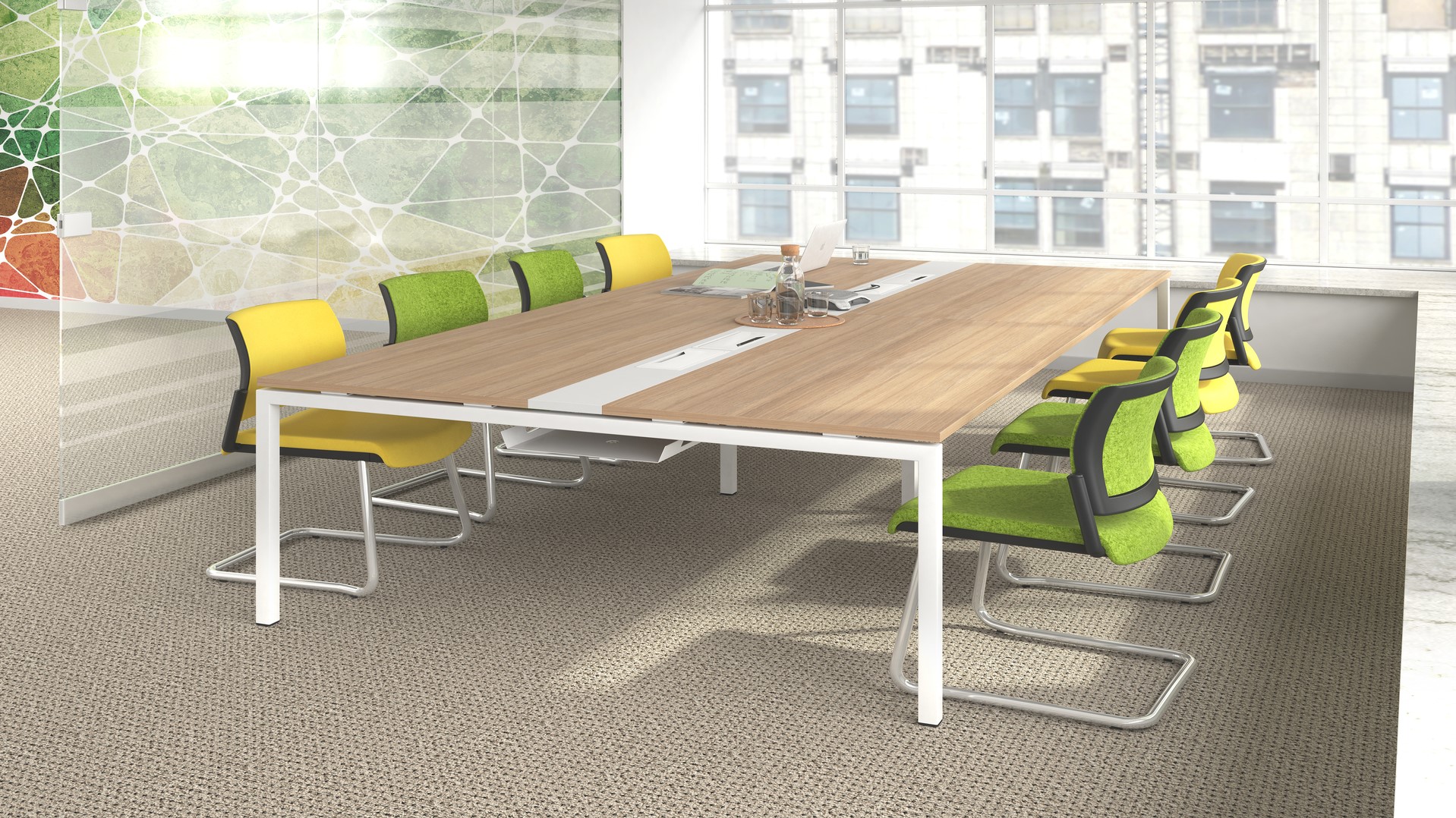 De metalen vergadertafel Nova is een strakke vergadertafel. De tafel is optioneel te voorzien van verschillende inzetstukken met kabeldoorvoerklep. Een mooie inrichting gegarandeerd! Er zijn verschillende kleuren en maten leverbaar zodat u de tafel naar wens kunt samenstellen.