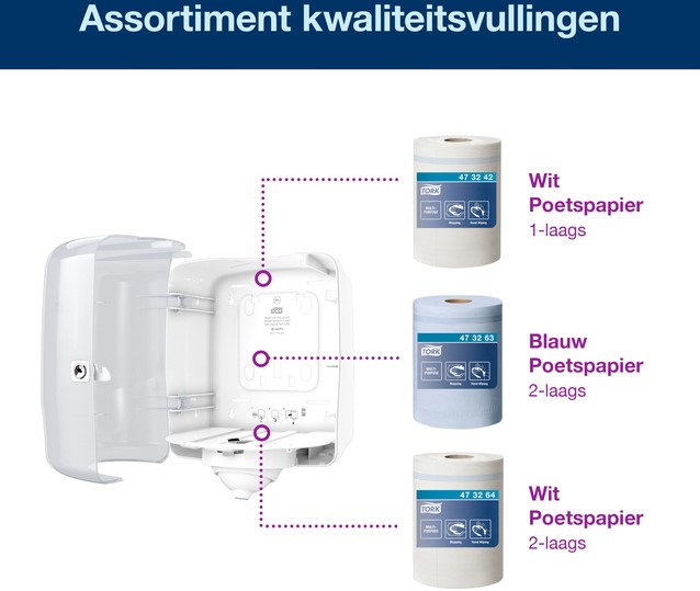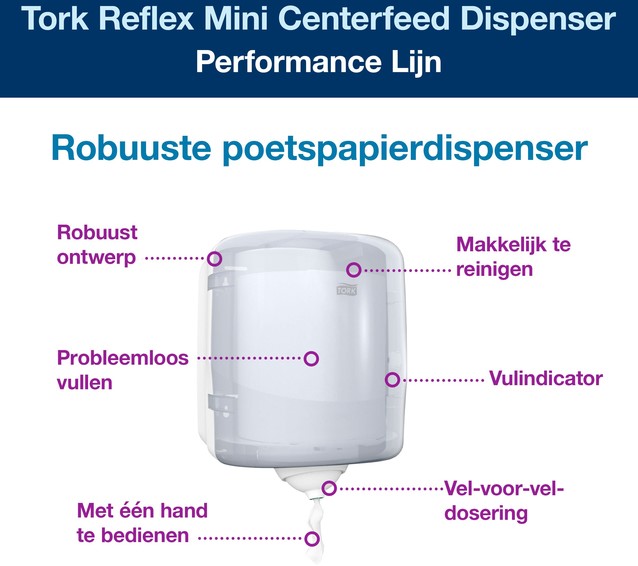 Stel een vraag over Poetspapierdispenser Tork M4 Reflex Performance wit 473190