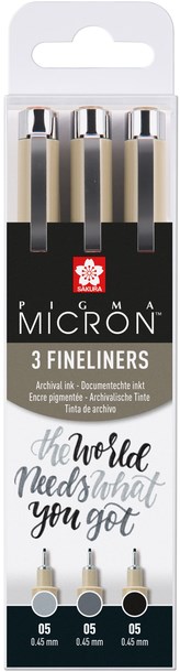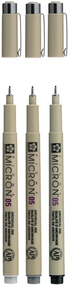 Fineliner Sakura Pigma Micron 05 set zwart & grijs 3 maten