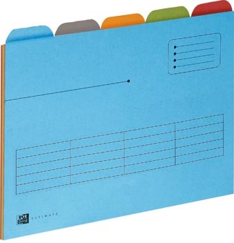 Dossiermap A4 blauw Oxford Ultimate uit karton met 5 gekleurde tabs