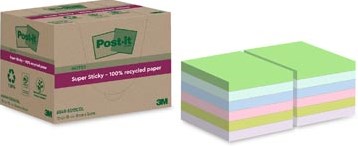 Post-it Recycled Super Sticky Notes zijn ideaal voor iedereen die behoefte heeft aan betrouwbare notities. Deze notities zijn perfect voor gebruik op verticale oppervlakken of op plekken waar andere notities niet goed blijven plakken, zoals computerschermen, deuren en muren. Dankzij de sterke kleefkracht blijven ze langer zitten en zijn ze eenvoudig te verplaatsen. De notities zijn gemaakt van 100% gerecycled papier en zijn dus ook een milieuvriendelijke keuze. Met een assortiment van kleuren zoals groen, roze, blauw, geel en paars, zijn ze niet alleen functioneel maar ook leuk om te gebruiken. Elke verpakking bevat 12 blokken van 70 vel, wat zorgt voor voldoende voorraad voor al je notities.