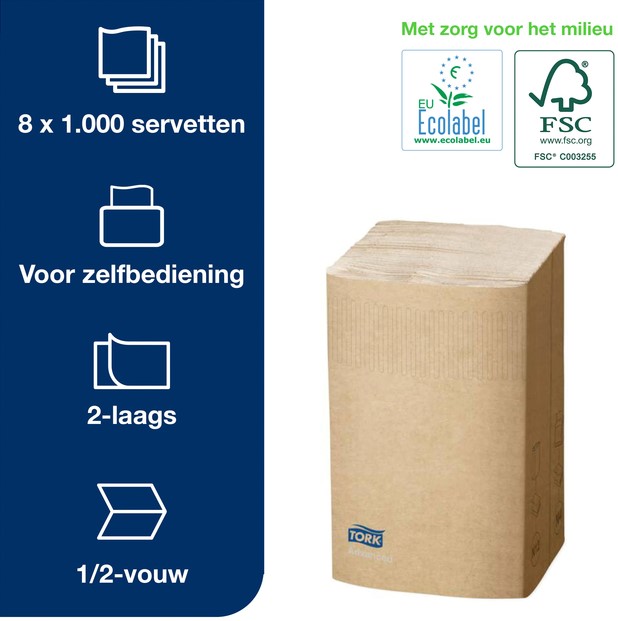 Stel een vraag over Servet Tork N4 Xpressnap Premium 1/2 vouw 2-laags 213x165mm 1000 vel naturel 12880
