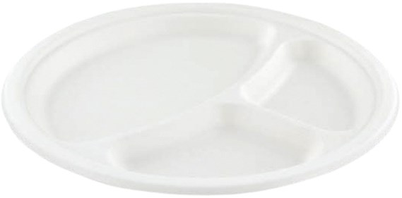 Bord suikerriet IEZZY 260mm 3 vaks PFAS-vrij wit 50 stuks