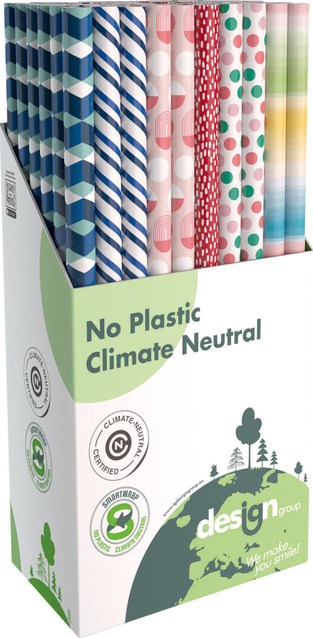 Dit zijn duurzame en folieloze rollen inpakpapier, ze zijn op een speciale wijze gewikkeld, waardoor er geen plastic meer nodig is en daardoor minder afval.