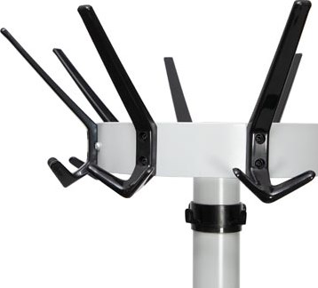 32 kledinghaken: 24 metalen kledinghaken + 8 kunststof haken aan de zuil en aan de parapluhouder