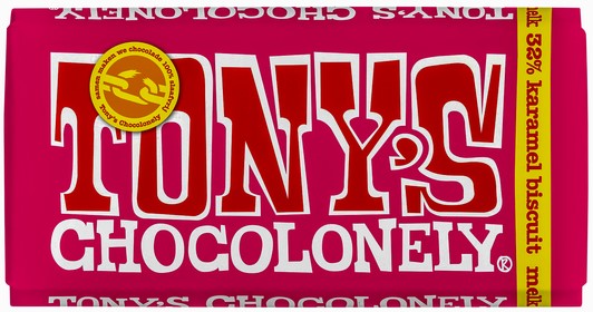 Stel een vraag over Chocolade Tony's Chocolonely melk karamel biscuit reep 180gr