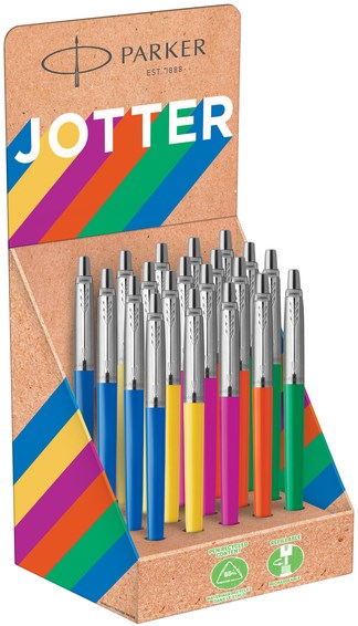 Jotter Originals bevestigt opnieuw haar toewijding aan het gebruik van meer verantwoorde materialen: het assortiment balpennen en gelpennen bestaat nu voor 55% uit gerecycleerde materialen (exclusief navulling) .