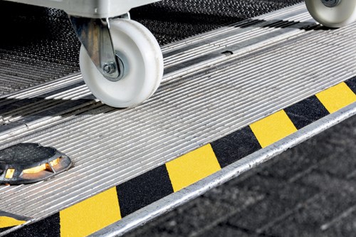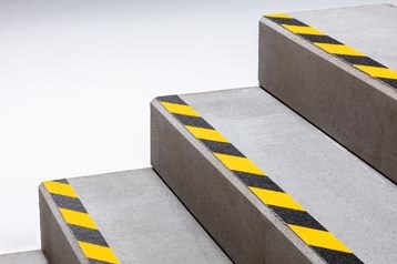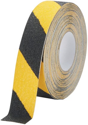 Deze geel met zwarte antislip tape zorgt voor extra grip op paden, treden of opritten.