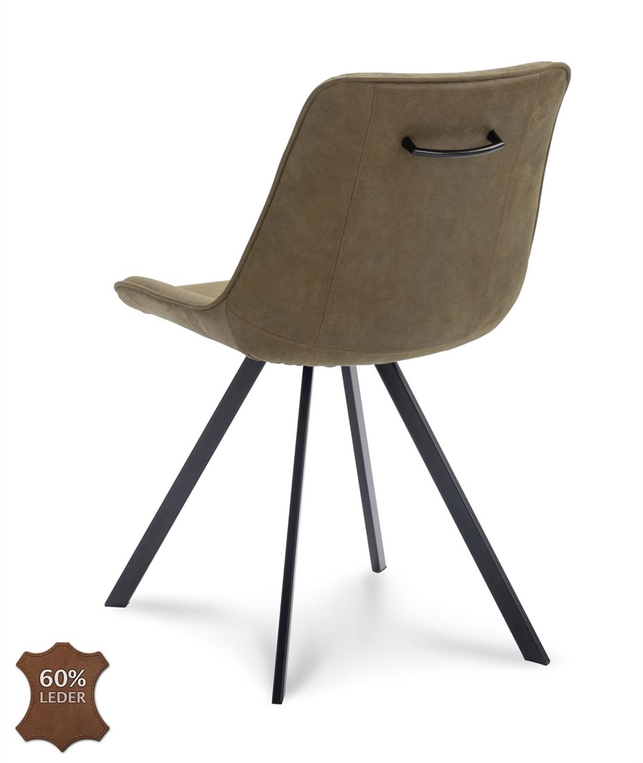 • De stoel Siberit is een moderne stoel en de rugleuning is gestikt in een prachtige ruitvorm. De stalen poten ogen rustig en sterk tegelijkertijd. Het handvat op de achterkant maakt de stoel makkelijk verplaatsbaar en geeft hem daarnaast net wat meer power.