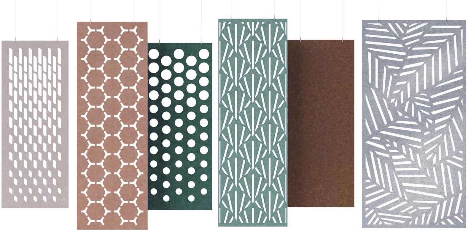 Het ACOUSTIC ARTWORK-systeem omvat drie soorten akoestische oplossingen die helpen om akoestisch comfort te creëren in zowel werk- als ontspanningsruimtes. Kies degene die het beste bij u past en die aan uw individuele eisen voldoet, of u nu een creatieve oplossing nodig heeft om de ruimte in te delen of subtiele decoratieve elementen voor het plafond en de wanden van uw kantoor.