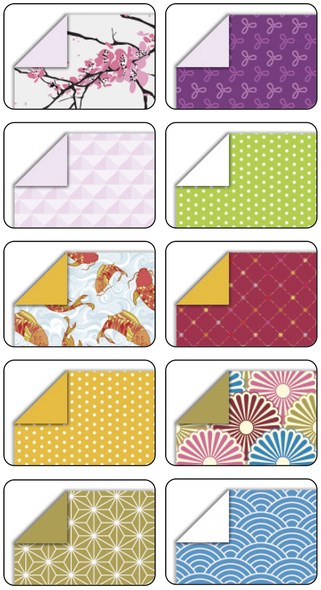 Vouwblaadjes Folia 80gr 15x15cm 50 vel 2-zijdig Japan 10 designs assorti kleuren