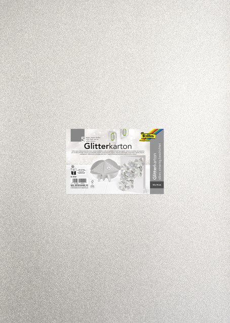 Enkelzijdig gekleurd fotokarton met glittereffect in de kleur zilver .
