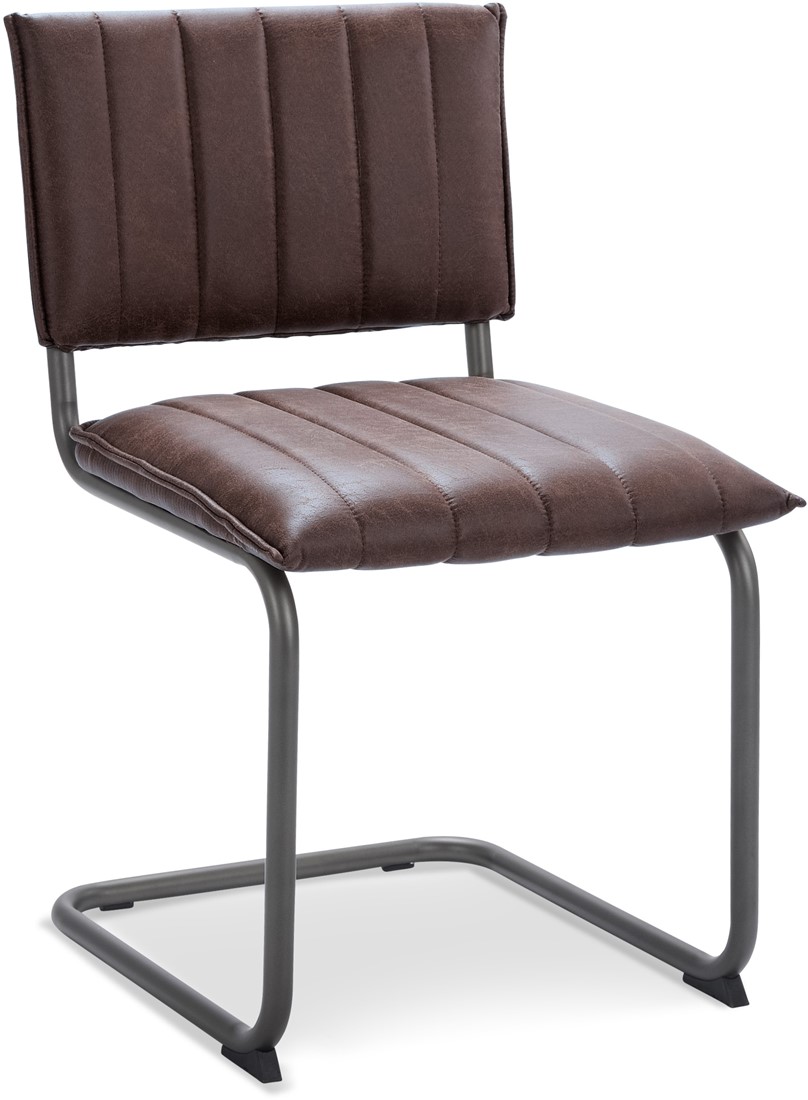 • Stoel Cancun is een mooie stoel met rawhide bekleding. De rugleuning en zitting zijn gestikt met verticale lijnen. De stoel heeft een gebold zitting. Daarnaast is de rugleuning open van de zitting.
