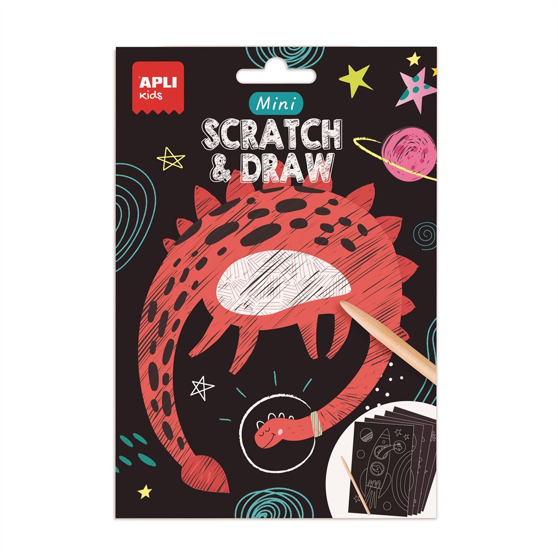 Display van 12 sets vellen om te krabben op zakzakje in 3 verschillende designs: Space dinos, Magic world en Ocean pirates.