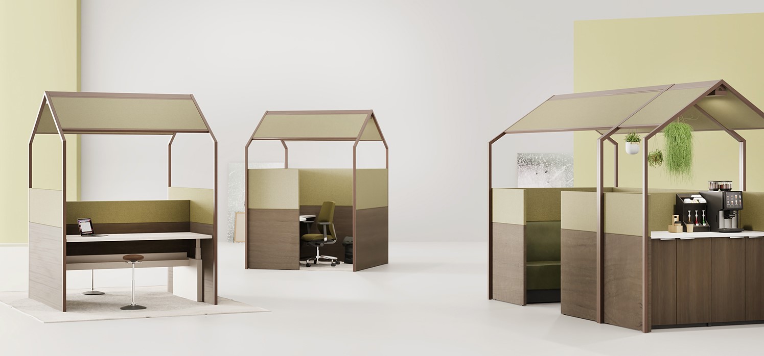 • Deze overlegplek is ook verkrijgbaar zonder dakje, zonder akoestische opzetwanden en eventueel met hogere opzetwanden van 60 cm hoog (i.p.v. 40 cm)