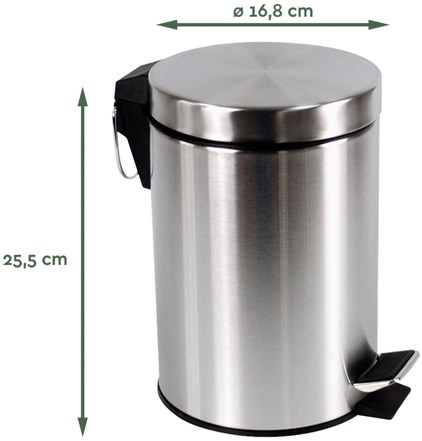 De BRASQ Pedaalemmer is een geurdichte en perfect sluitende afvalemmer, handig in gebruik en onmisbaar in elk huishouden of sanitaire omgeving! De prullenbak is klein, praktisch, lichtgewicht en met een modern en strak design. De prullenbak, met een doorsnede van 17 cm, is ook handig te gebruiken op de (thuis)werkplek. Deze pedaalemmer staat altijd netjes! De prullenbak heeft een voetpedaal met antislip profiel waardoor hij eenvoudig te bedienen is. Ook heeft de pedaalemmer een uitneembare kunststof binnen emmer met handvat van 3 liter. Deze emmer is eenvoudig te legen en te reinigen. Met de voetfunctie hoef je je geen zorgen te maken over het aanraken van vuilnis of het verspreiden van bacteriën, waardoor de omgeving van de pedaalemmer hygiënisch blijft. De onderzijde van de pedaalemmer is uitgerust met een beschermrand waardoor hij stabiel blijft staan en dit voorkomt ook krassen op de vloer.
