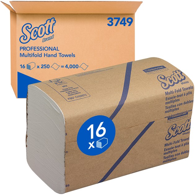 Scott Papieren handdoekjes 3749 16 pakketten x 250 witte papieren handdoeken (4000 stuks in totaal)
