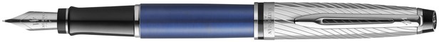Met de Expert Deluxe Blue Vulpen, die een moeiteloze schrijfervaring biedt, kunnen mensen hun hoge ambities en superieure smaak tonen. Het conische silhouet van de huls en het laser-gegraveerde, voorgevormde strepenpatroon van de dop, geïnspireerd op tijdloze herenkleding, voegen Franse flair, vertrouwen en autoriteit toe aan elke schrijfgelegenheid. De exclusieve metallic blauw gelakte huls, de kenmerkende Waterman-clip met dubbele vertakking en de schuine dop combineren naadloos met het elegante, gebogen W-ontwerp van de roestvrijstalen penpunt. De Expert Deluxe-collectie – Een reflectie van ambitie. Wordt geleverd in een Waterman geschenkverpakking.