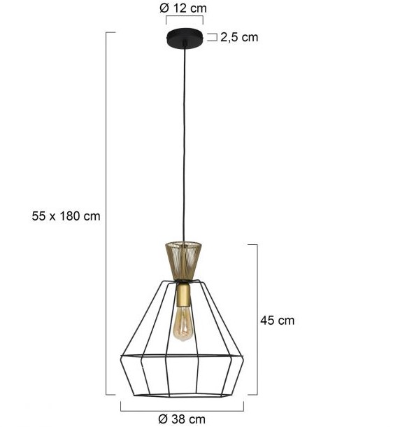 Eigentijdse hanglamp uit de Anne Lighting collectie. Voorzien van een E27 (grote) fitting en geschikt voor alle lichtbronnen tot 40 watt. Tijdens het monteren van de Novac is deze in hoogte verstelbaar van minimaal 55 centimeter tot maximaal 178 centimeter. De diameter van de lamp is 38 centimeter en de hoogte is 48 centimeter. De lamp is dimbaar middels een externe dimmer en dimbare lichtbron. Lichtbron word niet meegeleverd.