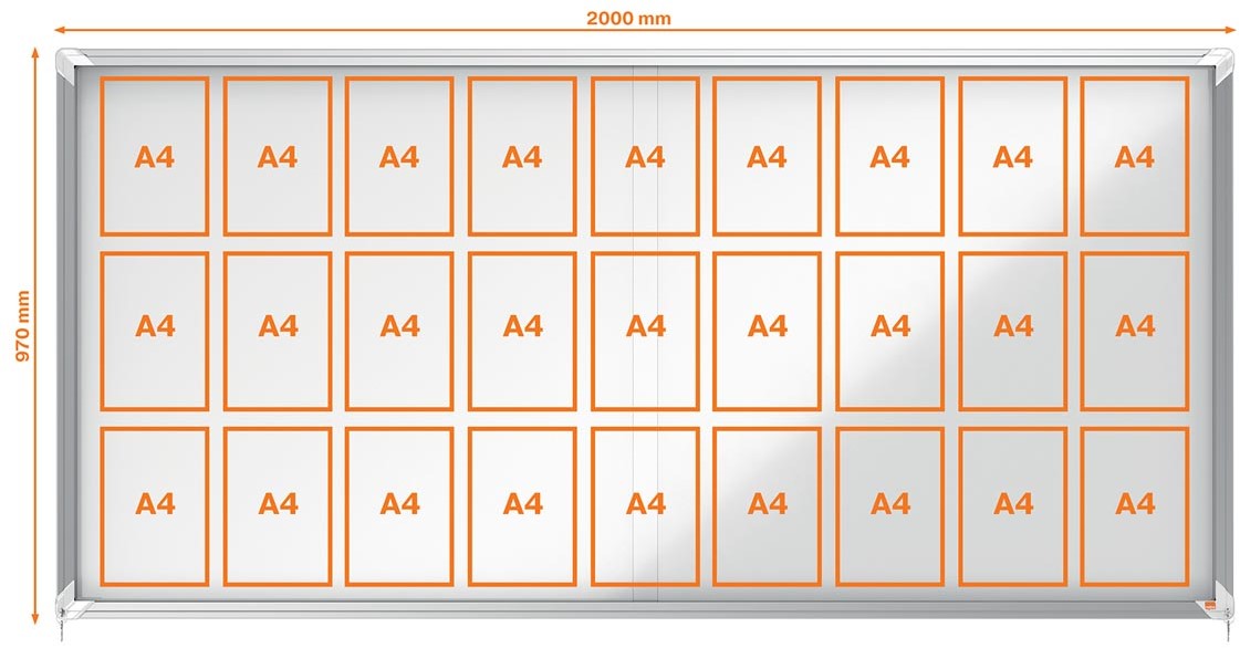 Artikelomschrijving Nobo Premium Plus binnenvitrine, schuifdeuren met hoekslot, magnetisch, 27 x A4