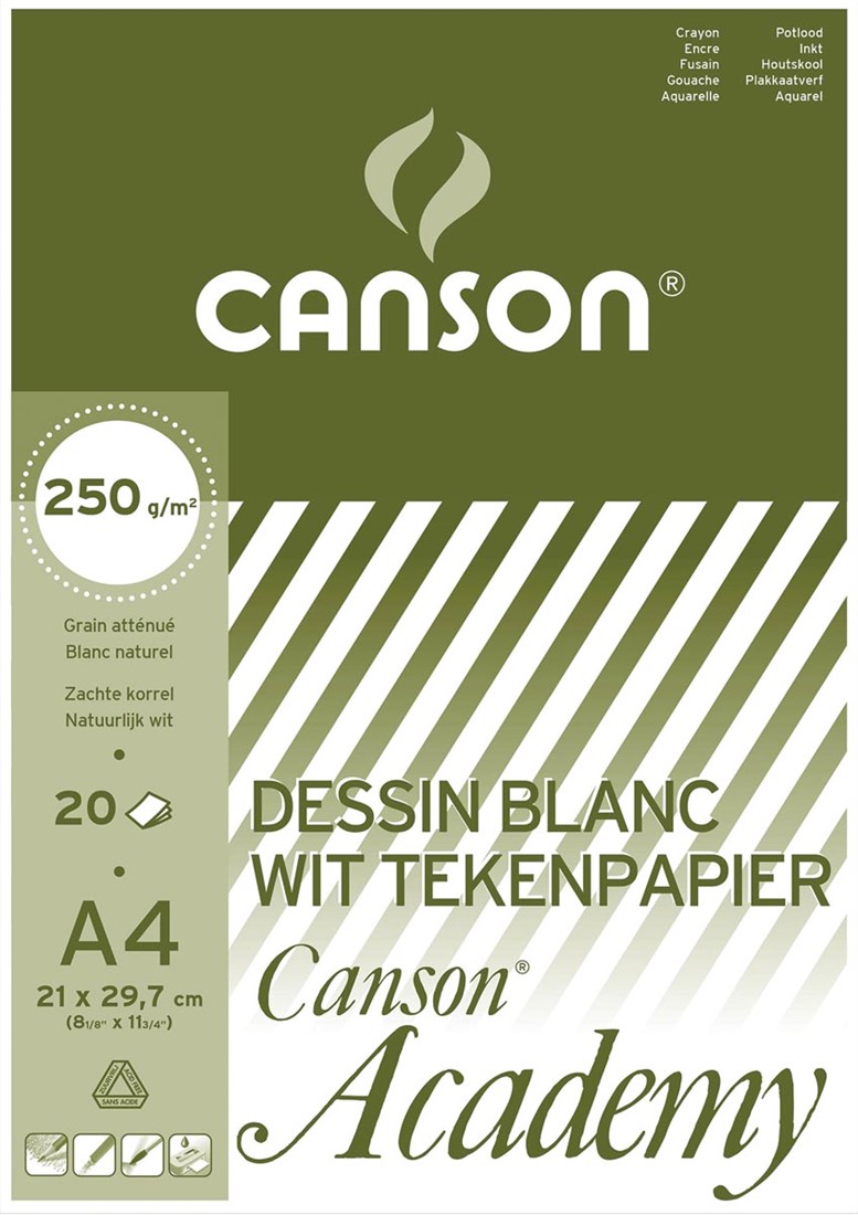 Artikelomschrijving Canson tekenpapier Academy, 250 g, ft 21 x 29,7 cm, A4, blok van 20 vel