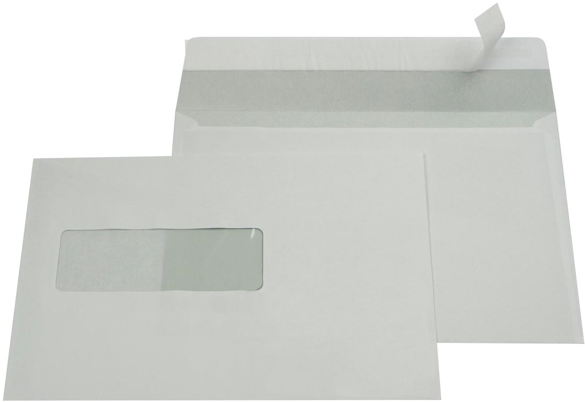 Kwaliteitsenveloppen van wit houtvrij papier van 80 g/m² geschikt voor dagelijks gebruik. Grijze binnenzijde. Doos van 500 stuks. FSC-gecertificeerd.