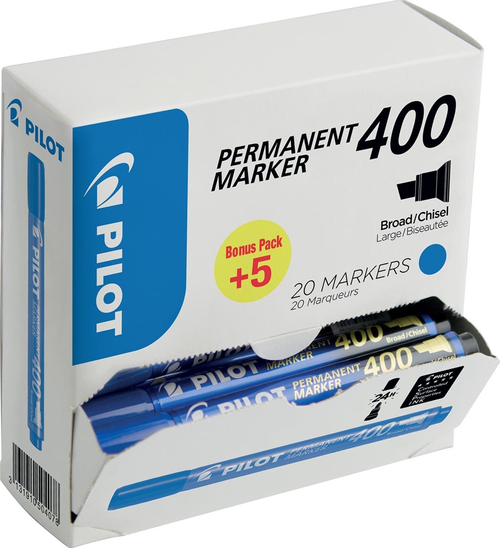 Artikelomschrijving Pilot permanent marker 400, XXL doos met 15 + 5 stuks, blauw