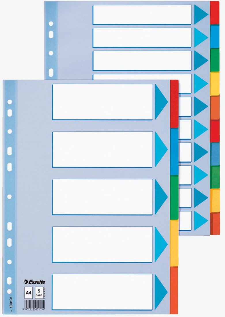 Artikelomschrijving Esselte tabbladen, voor ft A4, karton, 10 tabs, 11-gaatsperforatie